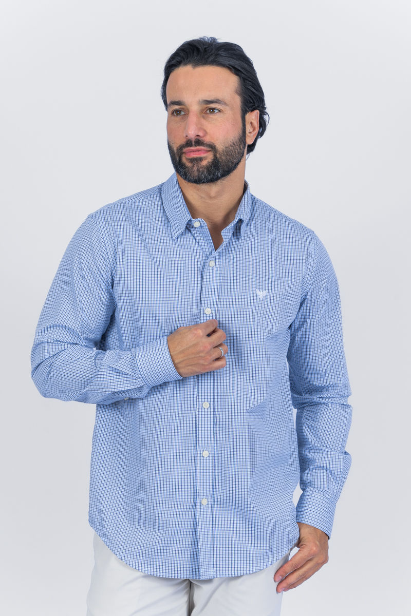 01.20750-N Camisa 100% algodão tricoline xadrez manga longa